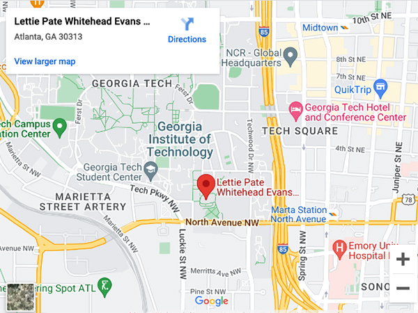 The College of Sciences Dean's Office is located at 225 North Ave NW, in Tech Tower, Georgia Tech’s main Administration Building, which is Building 35 on the campus map.
